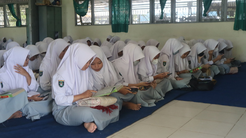 Kegiatan kedua pesantren ramadhan dilakukan kegiatan pengajian oleh peserta didik dan guru tenaga pendidik sman 13 banjarmasin